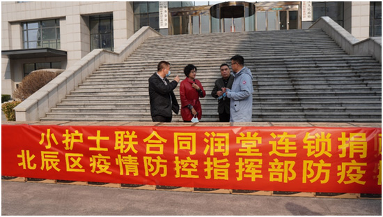 3月10日上午,捐贈(zèng)儀式在北辰區(qū)政府舉行,出席儀式的有北辰區(qū)副區(qū)長(zhǎng)馬希榮、區(qū)防疫工作指揮部組長(zhǎng)竇百鳴、區(qū)防疫工作指揮部辦公室主任楊肖鴻、小護(hù)士公司董事長(zhǎng)楊印江、同潤(rùn)堂連鎖總經(jīng)理?xiàng)顟蚜�、小護(hù)士公司董事會(huì)秘書董曉光、小護(hù)士公司人資行政總監(jiān)方立勝。